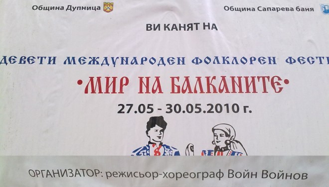 Този плакат искрено ме озадачи. Уж фестивалът се провежда под мотото „Мир на Балканите“, а главният организатор и режисьор носи звучното и не особено миролюбивото име Войн Войнов…